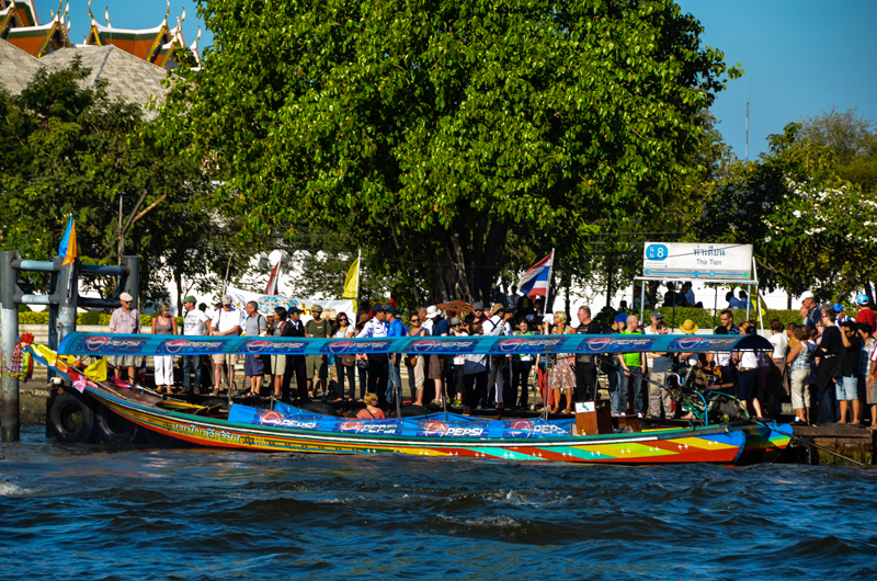 Ferry services on the Chao Phraya river start at Central Peir with the Chao Phraya Express Boat Service. All day regular ferry tickets are 150 Baht (price may have increased) and can be very crowded at peak times due to people going to work or on their way home, but it's very cheap and great fun. It is not recommend taking young children at peak times as this would be risky. See the Chao Phraya River Famous Attractions Tourist Boat guide. This map shows all the piers along the river with the main tourist destinations to visit. It would take two or three days to see most of the attactions.