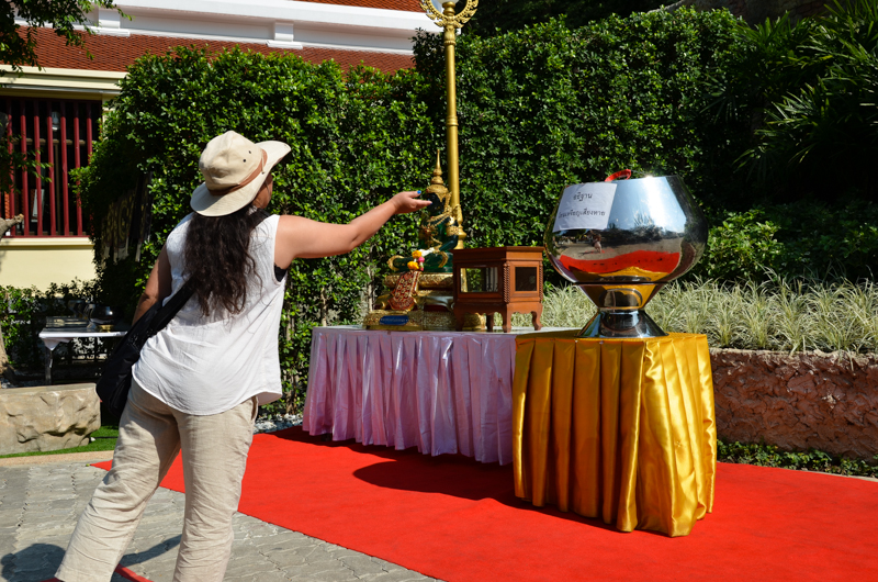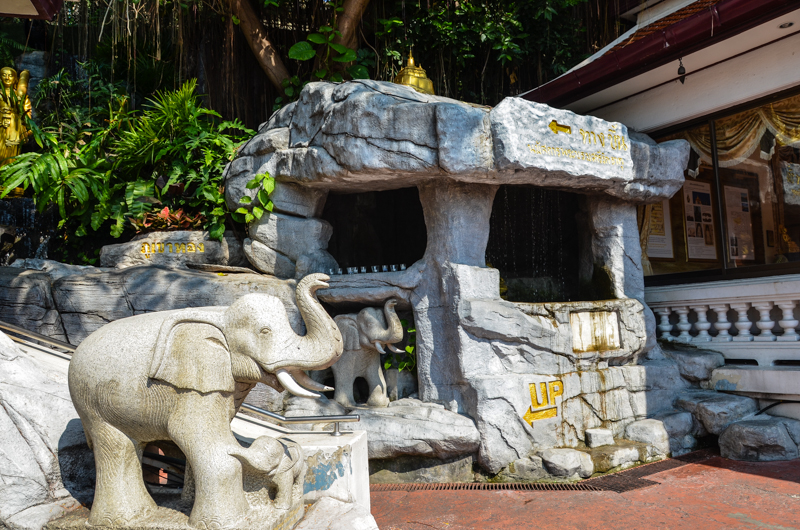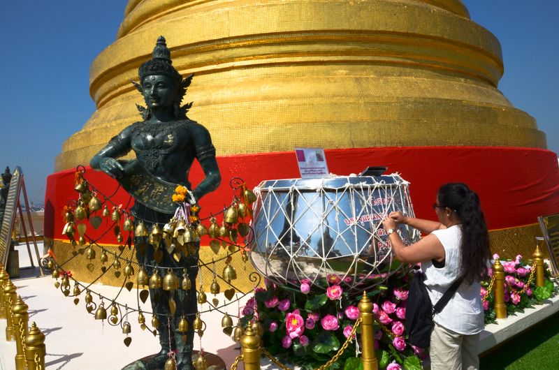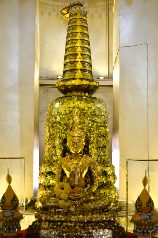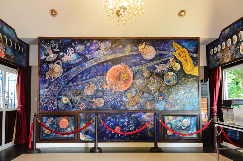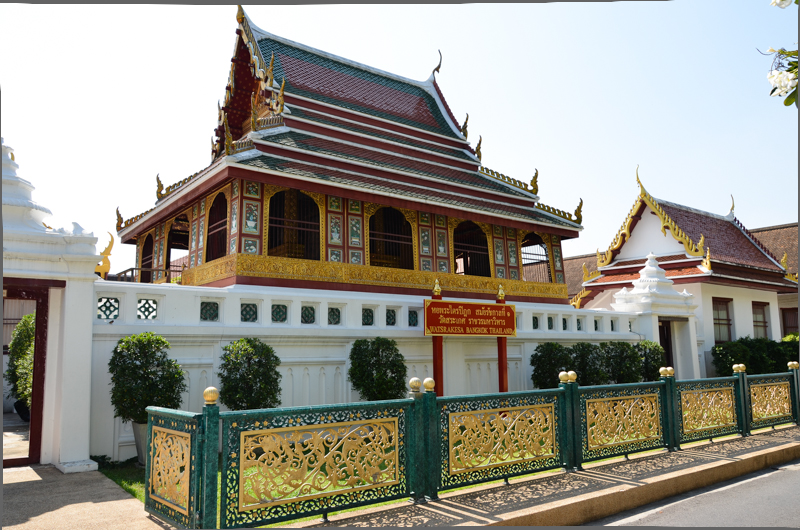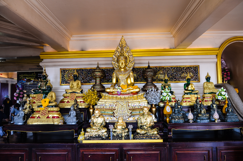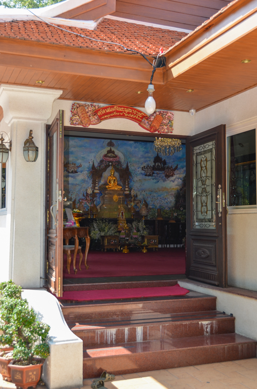 Wat Saket in Bangkok also commonly known as The Golden Mount Temple. The official name being Wat Saket Ratcha Wora Maha Wihan. The mural above depicts the annual procession held every November up to the Chedi during the full moon. The festival is held for 9 days. You can reach to the top where it has expansive views of Bangkok. It is a large complex with many other buildings at the base of the mount. Opening times are 8:00am until 5:30pm.