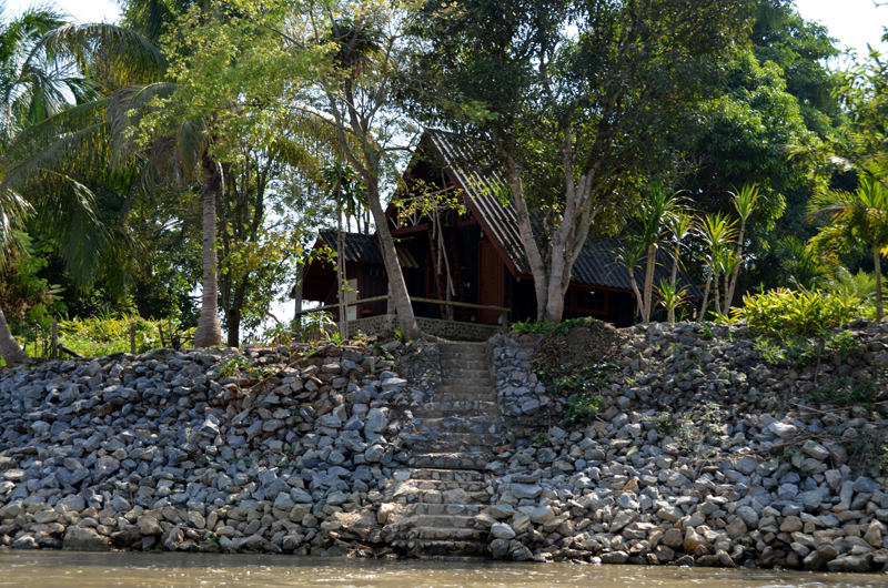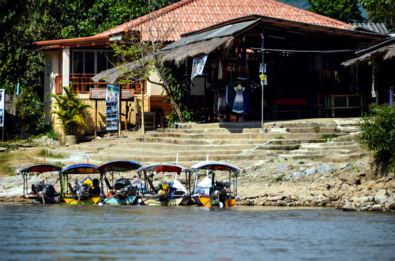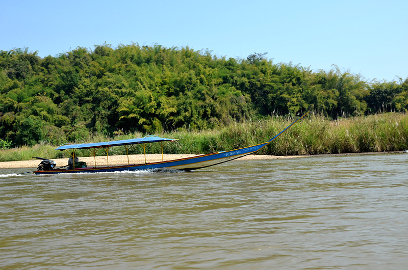 Take a cheap songtaew (10 person taxi truck) ride near Wat Phra Kaew on Trairat Road up Kraisorasit Road. Some songtaews go up Mae Far Luang road and over the bridge. Avoid paying an overpriced tuk-tuk ride. Ask to be dropped off on the north side of the bridge and walk over the road to the boat tour. Mornings are busy with many tourists. Early afternoons are quiet and easy to book a long boat. Prices vary depending on how far up the river you want to go and what you want to see, but it is much cheaper than making an overpriced hotel tour booking. Chiang Rai Accommodation