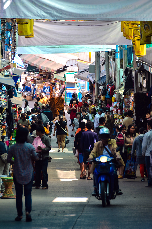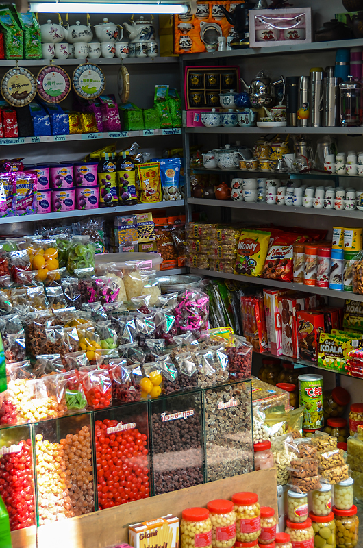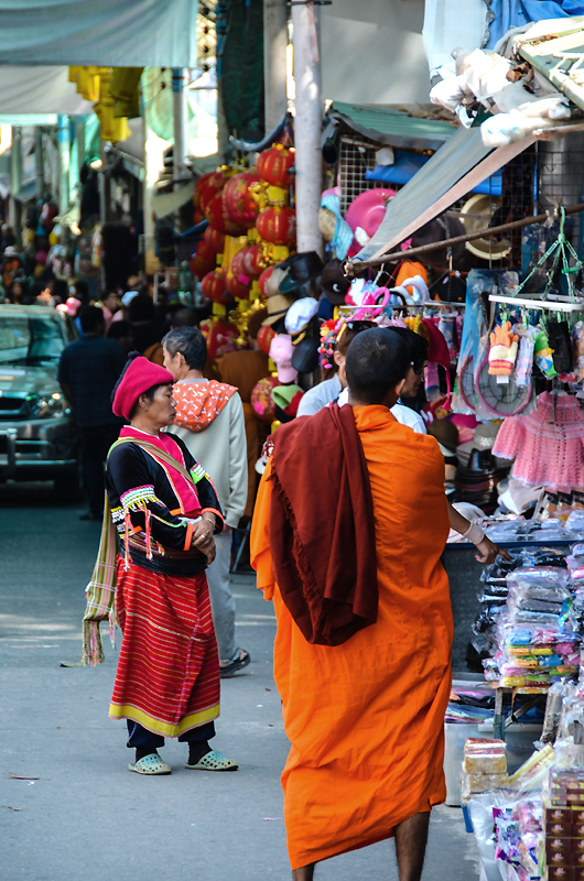 The Mae Sai markets next to the border entry into Myanmar. Wat Phrathat Doi Wao can be reached from behind the market up the covered alleyway on the western side.