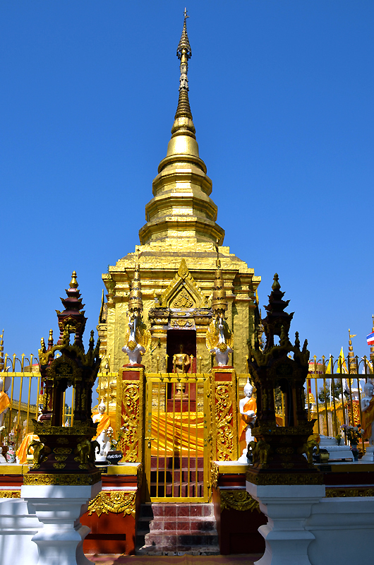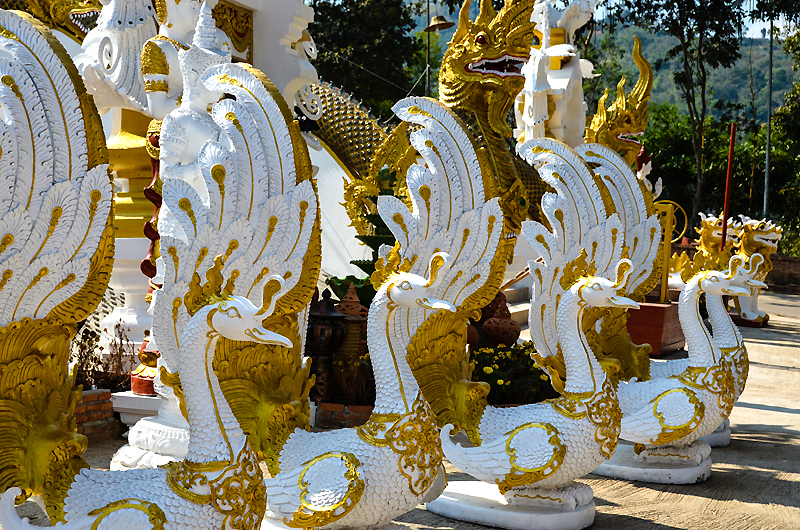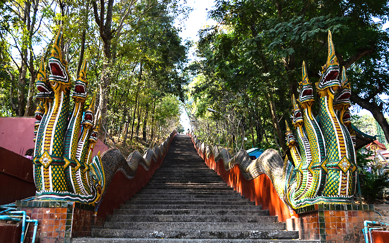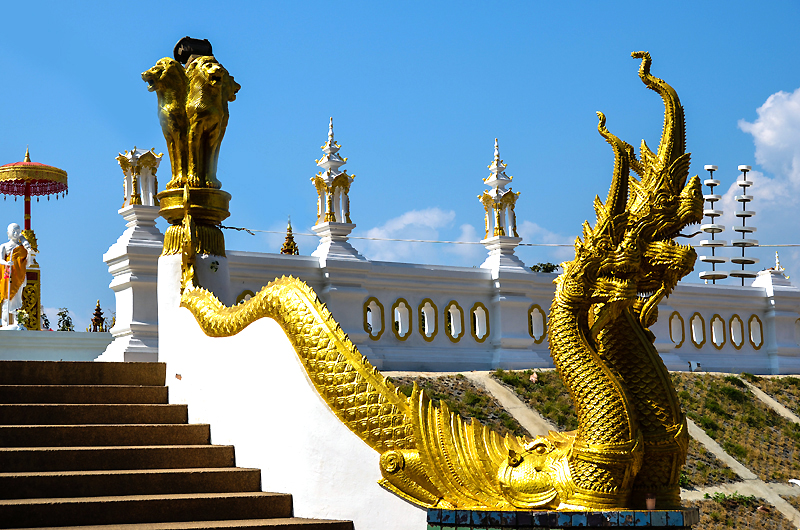 Wat Phrathat Doi Wao is also known as the Scorpion Temple. It is above the Mae Sai markets and has views over to Myanmar.