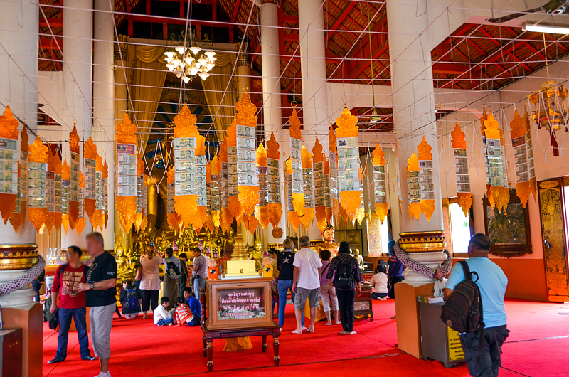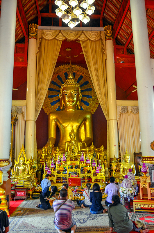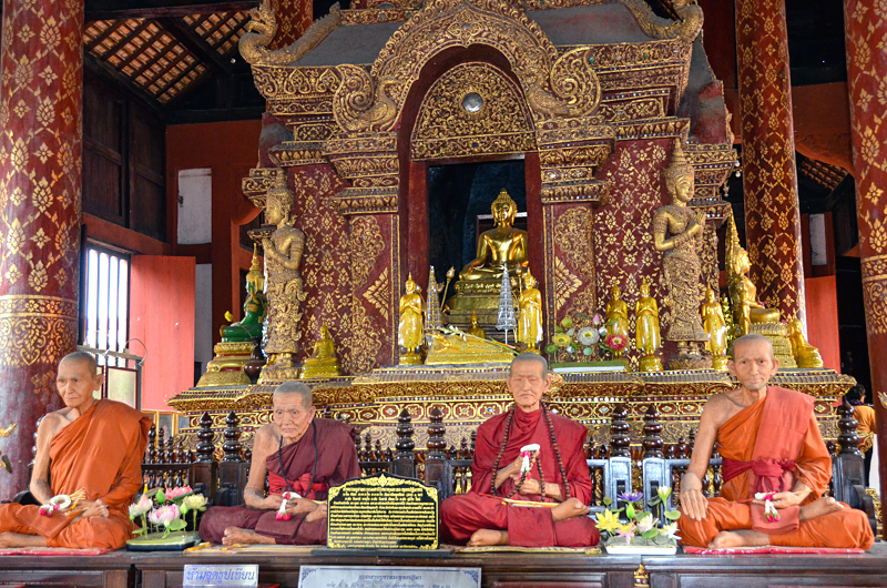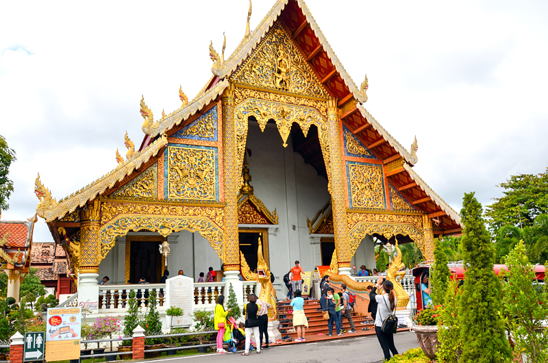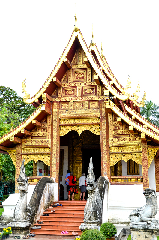 Wat Phrasingh is a very important temple in Chiang Mai. The monastry has a large number of monks. The above photo shows the Viharn Luang. The official name is Wat Phra Singh Woramahaviharn and it is located in the old city of Chiang Mai where Samlarn Road and Singharat Road join (intersects with Thonon Rachadamnoen Alley). Open 6am until 5pm daily.