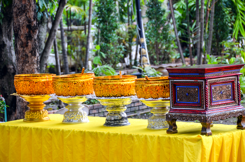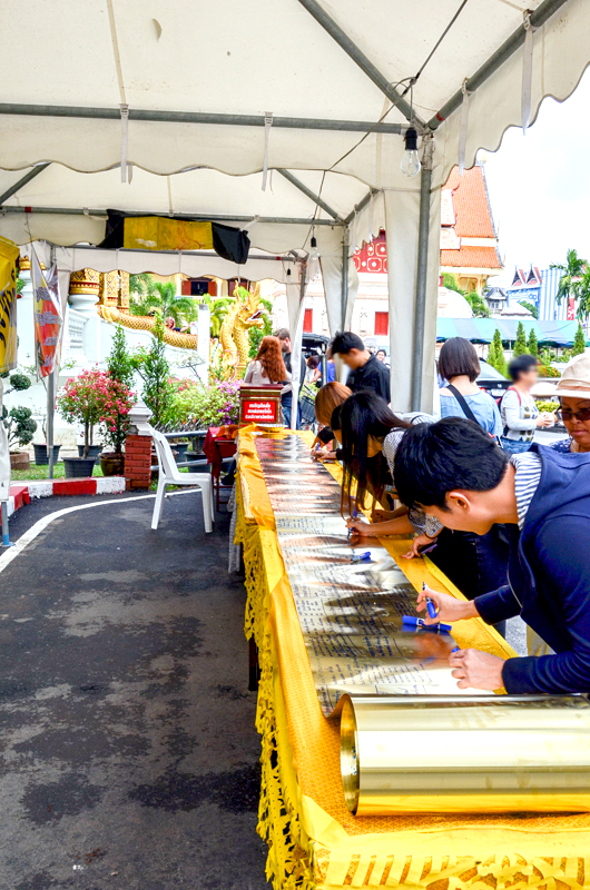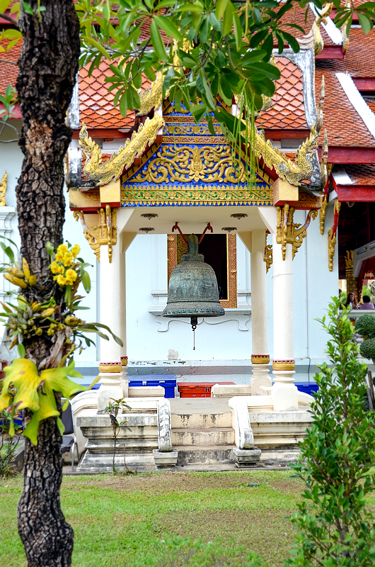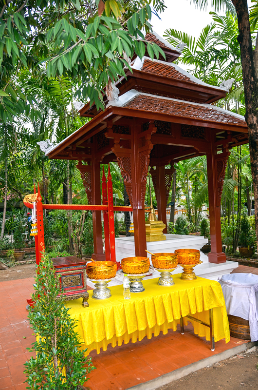 The temple complex has a Chedi, Ubosot, Viharn Lai Kham (photo below of smaller Viharn) , many Kuti, a Buddhist library, bell tower, and Lanna style art. One of the photo's below show a thin brass roll where a Buddhist would write down their name and the names of family members for good luck.